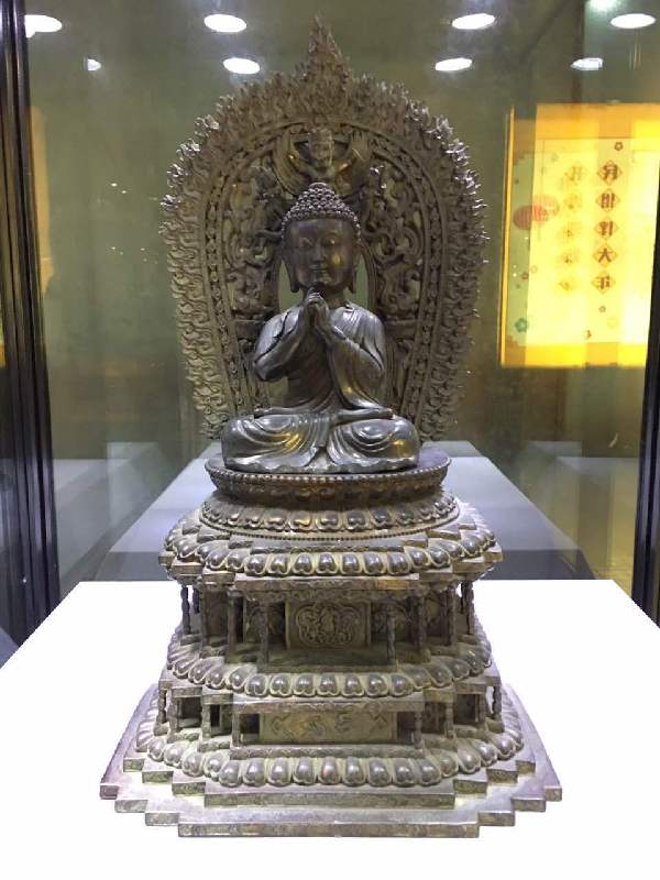 繼上個(gè)月舉辦的第一季“民國(guó)瓷畫展”,目前正在展覽的是第二季“佛像藝術(shù)展”。展出了遼金時(shí)期的銀鎏金佛塔、宋代泥塑描金的書卷觀音像、唐代捶揲銀鎏金“佛說(shuō)金色王經(jīng)”上下卷,還有南北朝時(shí)期的石雕彩漆描金思維菩薩像,這一期展出了29件展品。