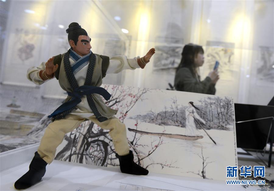 2月28日,工作人員在“金庸館”水墨畫展區(qū)介紹作品。當日,香港首個以著名武俠小說家金庸為主題的常設展館——“金庸館”在香港文化博物館揭幕,將于3月1日正式與市民見面。展館內(nèi)共展出珍貴手稿、照片、早期小說版本以及各類水墨畫等300多項展品,介紹金庸的早期事業(yè)、武俠小說創(chuàng)作歷程及其小說對香港流行文化的影響。秦晴攝
