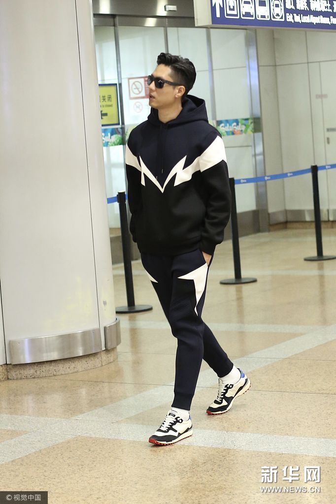 凌瀟肅迎運(yùn)動套裝低調(diào)現(xiàn)身 戴墨鏡型男范