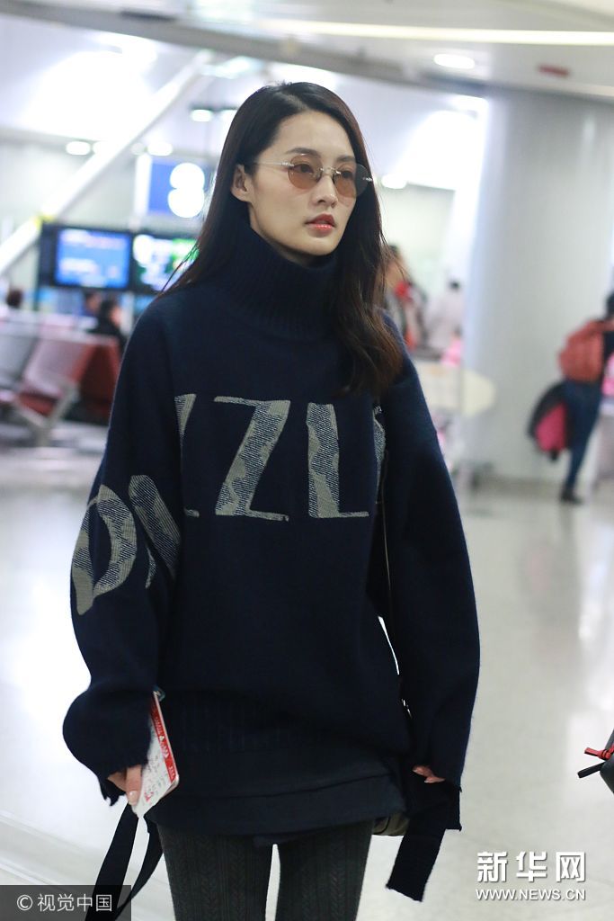 李沁高領(lǐng)毛衣 戴茶色墨鏡溫暖時尚