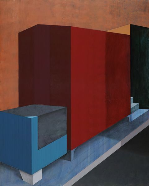 趙新宇從以往的作品中提取出了作品畫面的三個(gè)基本空間模型,“凹”“凸”“平”,并且在此次個(gè)展作品當(dāng)中非??桃獾囊载Q構(gòu)圖來(lái)強(qiáng)化這一理式概念,甚至試圖探究以往作品如果以一種“剩余”的狀態(tài)呈現(xiàn),意義生成的核心會(huì)發(fā)生怎樣的轉(zhuǎn)變?!妒彝?1垂直,傾斜》右下角垃圾箱輪子的處理,是以暗色塊暗示了原物的形態(tài),并沒有再做深入的刻畫,而實(shí)際上這一形態(tài)往往是作品底層的保留;《室外#3》右上部,你可以說(shuō)是割破了的畫面,或者是基于無(wú)意識(shí)的,總之對(duì)于結(jié)構(gòu)穩(wěn)定的畫面而言,像極了一次意外的產(chǎn)物。在某種意義上它超越了象征界,也即超越了經(jīng)驗(yàn)所能夠涵蓋的內(nèi)容。但是新作當(dāng)中似乎更有新的趨向,比如《室外#3》和《室外#4》兩件作品,一件觸及畫面的變形,另一件暖色調(diào)的嘗試則引發(fā)了某種藉里科式的憂郁,或許這是匱乏和剩余的并發(fā)癥,某種飄散的內(nèi)容甚至帶給人一種訴諸作品本身相反的感受。