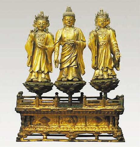 中國與佛教文化的聯(lián)系,在生活上,在文化上,在思想上,近年來在藝術品拍賣場上體現(xiàn)得尤為明顯。僅就2017年,春秋大拍期間各大拍賣場上就頻頻傳出佛造像拍賣過千萬乃至億元的喜訊。2017年3月15日,在佳士得紐約亞洲藝術周“宗器寶繪-藤田美術館藏中國古代藝術珍品”拍賣場上,北魏孝昌二年(公元526年) 比丘法興造釋迦三尊黃花石像以584.75萬美元成交。6月7日,北京保利2017春拍“自在菩提-中國金銅佛造像、唐卡”專場上,14-15世紀大隨求佛母以3000萬元落槌,加傭金以3450萬元成交。2017年6月8日,北京東正2017年春拍“皇家長物”專場上,清乾隆紫金璃瑪無量壽佛坐像以3400萬元落槌,加傭金3910萬元成交;而在“波若-佛教藝術”專場上,十四世紀銅鎏金白度母像以2300萬元成交。6月20日晚,在中國嘉德2017春拍“旃檀林-佛教藝術集萃”專場上,西藏11-12世紀合金銅釋迦牟尼佛站像以5100萬元落槌,加傭金以5865萬元成交。