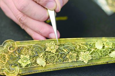 花絲鑲嵌是燕京八絕里最繁復(fù)的貴金屬手工技藝之一,有著2000多年的傳統(tǒng)文化底蘊(yùn)。如何把這項(xiàng)被列入國家級非物質(zhì)文化遺產(chǎn)項(xiàng)目的傳統(tǒng)工藝保護(hù)、傳承和發(fā)揚(yáng)光大,結(jié)合時代要求開展花絲鑲嵌產(chǎn)品的設(shè)計(jì)和創(chuàng)作,成為當(dāng)前擺在北京東方藝珍花絲鑲嵌廠(以下簡稱“東方藝珍”)的重大課題。