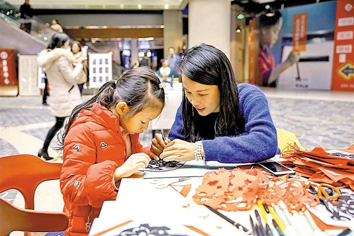 “老師、老師,我也能剪出漂亮的窗花了!”記者在現(xiàn)場看到,很多小朋友都圍在剪紙體驗區(qū),在專業(yè)剪紙老師的指導下學習剪紙。經(jīng)過細心的剪裁,小朋友們終于將手中的紙張變成花卉圖案,他們激動不已,紛紛向老師展示。