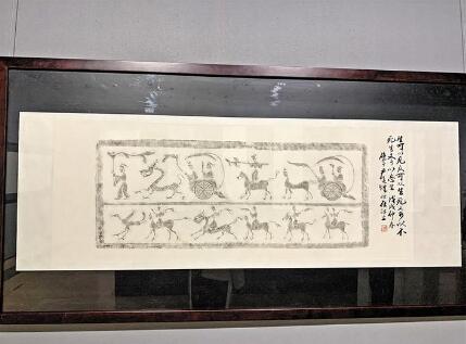 整個展覽分為“集印為詩”“詩意丹青”“我拓我家”三個主題板塊。以書法、拓片、山水畫等形式,豐富立體地展示了侯家三人多年來的藝術(shù)創(chuàng)作歷程。其中,“集印為詩”主要展現(xiàn)了侯軍多年來用收集的印章印文組合創(chuàng)作而成的一首首詩詞,以及諸位書家創(chuàng)作的詩書畫印作品。“我拓我家”則主要呈現(xiàn)了侯軍夫人李瑾平日以家為主題創(chuàng)作的傳拓作品,其中大部分皆由各地著名書畫家題跋或配畫,形式新穎,雅俗共賞。據(jù)了解,李瑾鐘情于傳統(tǒng)書畫,喜愛戲曲及民間剪紙,尤其喜歡傳拓藝術(shù)。在“詩意丹青”主題中,則集中展示了侯軍女兒侯悅斯所創(chuàng)作的優(yōu)美詩詞,并由畫家田耘、書法家朱德玲等以詩詞為題,創(chuàng)作書畫作品,構(gòu)成詩書畫印相交融的藝術(shù)呈現(xiàn)。