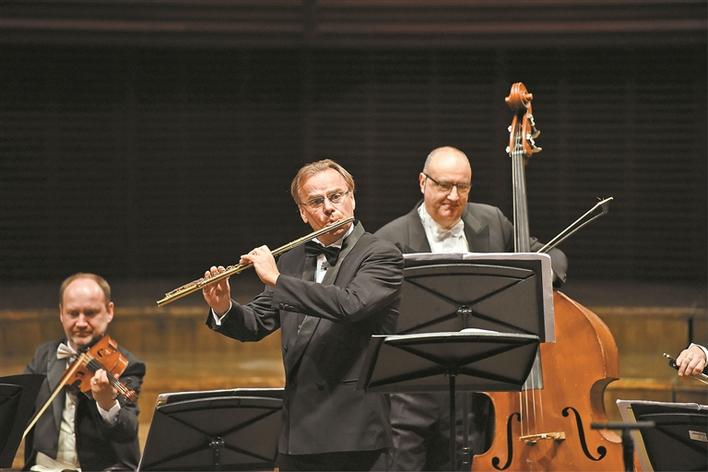 長笛大師安德烈· 格里米內(nèi)利與意大利愛樂獨奏家室內(nèi)樂團音樂會。 深圳特區(qū)報記者 胡蕾 攝