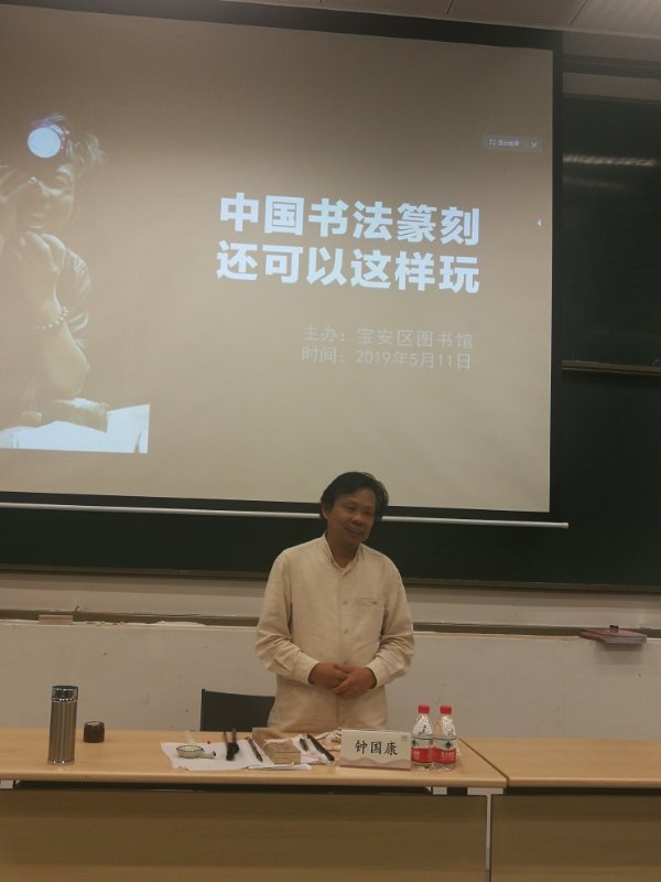 深圳新聞網(wǎng)5月11日訊(通訊員 孫善文)書法篆刻是優(yōu)秀的傳統(tǒng)文化,蘊(yùn)含了中華千年文化的精粹。上午,著名書法篆刻家鐘國(guó)康在寶安圖書館舉辦專題講座,向到場(chǎng)的書法、篆刻愛好者分享了自己五十年來的書法、篆刻心得和經(jīng)驗(yàn),給大家?guī)砹艘粓?chǎng)有思想、有內(nèi)容、有美感的藝術(shù)盛宴,在場(chǎng)人員無(wú)不受益良多。