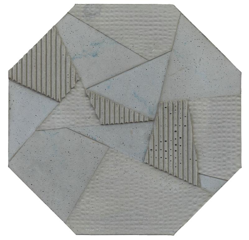自2013年王豪開始以水泥作為個(gè)人創(chuàng)作媒介以來,三個(gè)系列“寂”、“樸”、“遠(yuǎn)”并行展開?!凹拧焙汀皹恪睆?qiáng)調(diào)水泥作品的靜態(tài)特征,不論是單件作品還是多件組合作品,在水泥材料的細(xì)微變化與色塊搭配上,力求傳達(dá)出一種寧靜、樸拙的整體氣息;“樸”系列在形式上更為豐富,不僅嘗試使用斜線、三角形乃至圓形,還探索富于中國古典韻味的形式表達(dá)(例如對(duì)中國古代手卷的模擬);“遠(yuǎn)”系列的名稱則來源于中國傳統(tǒng)山水繪畫所特有的透視技法“三遠(yuǎn)”概念,這系列作品意圖通過畫面的動(dòng)態(tài)表現(xiàn)打破二維空間限定,拓展平面繪畫的深度與廣度,從美學(xué)意境上與高遠(yuǎn)、深遠(yuǎn)、平遠(yuǎn)相融合。