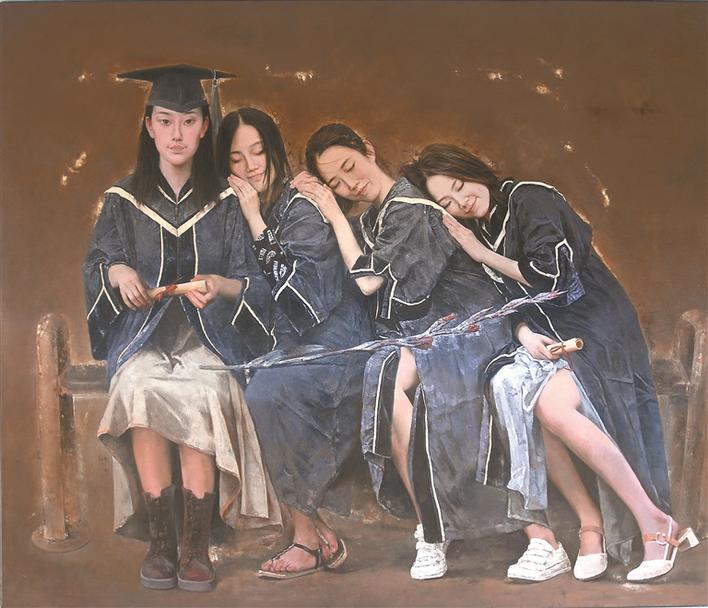 比如,董小明的《真水無香》展現(xiàn)了他在水墨領域持續(xù)不斷的探索精神;梁宇的《前方的信號》以鐵路元素為題材,畫面凝練,意喻強烈,催人奮進;其加達瓦的版畫《對眸》描述了母親與孩子彼此注視的溫暖時刻;陸聲設的版畫《中國電子一條街》,對焦深圳華強北普通人的面孔;余澎的作品《和而不同》意蘊深遠,以視覺形象對和而不同做了注腳;劉文的《暢想青春》描述了四個女孩拍攝畢業(yè)照的溫馨情景,展現(xiàn)了青春的活力;吳登軍的《SZ城中村》展現(xiàn)了城中村井然有序的場景;楊光的《未來石》表達了藝術家對未來的大膽想象。