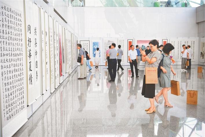 深圳特區(qū)報訊(記者尹春芳/文胡蕾/圖)一幅幅洋溢著激情的書畫作品,飽含對時代的歌頌。為慶祝中華人民共和國成立七十周年,由深圳市書畫家協(xié)會策劃,并聯合深圳民族精神和中國發(fā)展研究中心主辦,深圳市嘉鑫輝煌公司投資有限公司承辦,深圳汕尾商會協(xié)辦的“向祖國致敬——深圳書畫作品展暨感恩筆會”于昨天下午在深圳市民中心C禮廳開幕?,F場高朋滿座,氣氛熱烈,彌漫著濃厚的藝術氣息,展現了鵬城深厚的藝術底蘊。