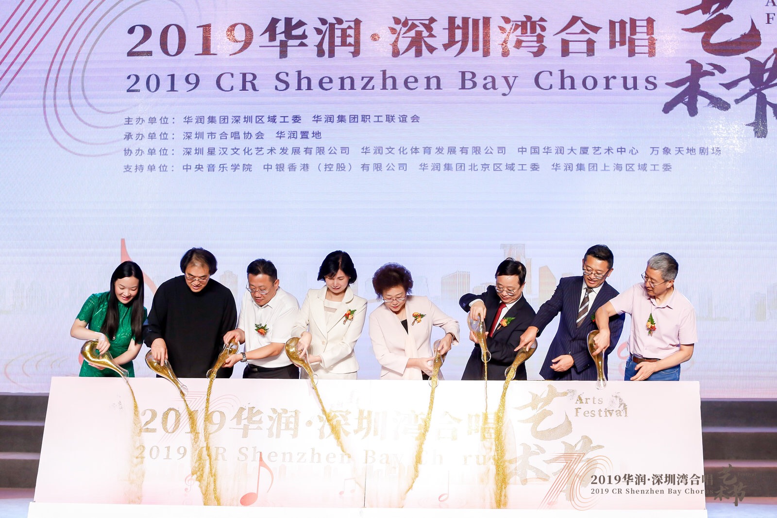 藝術(shù)節(jié)開幕式于9月20日在中國華潤大廈藝術(shù)中心舉行,華潤集團馬璐董事、潘福董事,深圳市相關(guān)領(lǐng)導(dǎo)、藝術(shù)節(jié)藝術(shù)總監(jiān)陳光輝、中央音樂學(xué)院原副院長、教授周海宏等出席。來自深圳市的3家外部合唱團以及華潤合唱團聯(lián)隊,分別獻(xiàn)唱了《讓我們蕩起雙槳》《迎來春色換人間》《我和我的祖國》等經(jīng)典曲目。