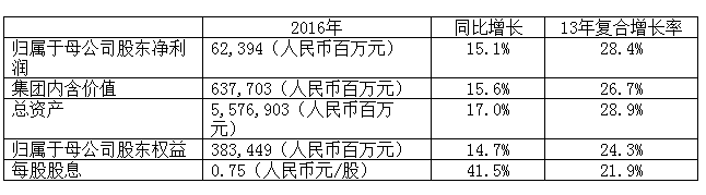 中國平安保險(集團(tuán))股份有限公司(以下簡稱“中國平安”、“平安”、“集團(tuán)”或“公司”,股票代號:香港證券交易所2318,上海證券交易所601318)公布截至2016年12月31日全年業(yè)績。