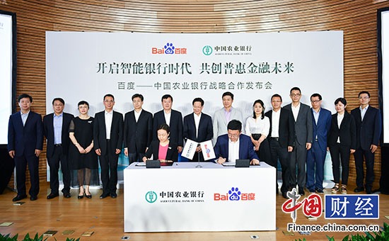 中國(guó)網(wǎng)財(cái)經(jīng)6月20日訊 20日,中國(guó)農(nóng)業(yè)銀行與百度戰(zhàn)略合作簽約儀式在北京舉行。據(jù)悉,雙方將圍繞金融科技領(lǐng)域開(kāi)展全面合作,并將共建“金融科技聯(lián)合實(shí)驗(yàn)室”,在智能金融服務(wù)領(lǐng)域進(jìn)行深度研究。
