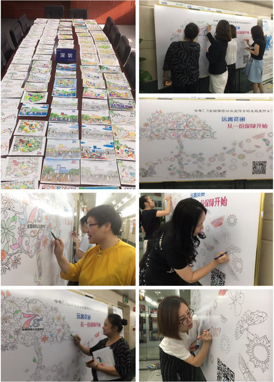 深圳分公司在職場大廳設(shè)置了填色墻,供員工及客戶共同上色,為生活添色彩。同時(shí),深圳分公司面向廣大員工及客戶發(fā)放大量填色卡,舉辦填色贏獎(jiǎng)品活動(dòng),深受民眾的喜愛與好評。
