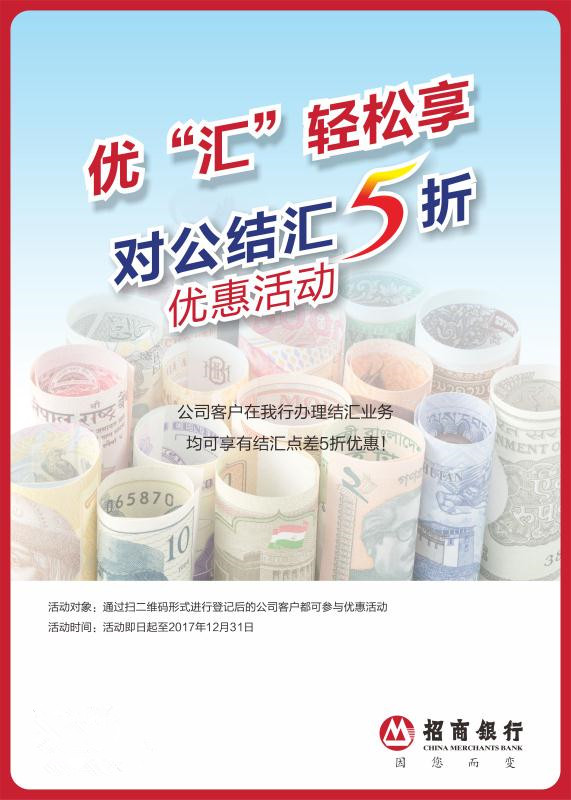招商銀行深圳分行針對公司客戶推出結(jié)匯五折優(yōu)惠