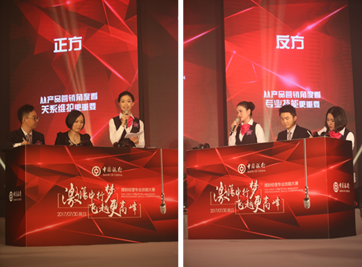 在辯論環(huán)節(jié),選手們采取3:3對抗辯論形式,圍繞著 “美元加息,現(xiàn)階段配置美元資產(chǎn)是否合理?”、“在服務客戶時,關系維護和專業(yè)技能,哪個更重要?”兩大辯題進行辯論,現(xiàn)場金句頻現(xiàn),精彩紛呈。此環(huán)節(jié)設計,不僅考驗理財經(jīng)理們的個人專業(yè)技能水平,還考驗團隊臨場發(fā)揮能力。