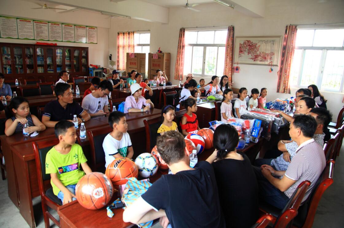 隨后,在村主任的帶領(lǐng)下,大家來到了洋頭小學(xué),參觀了小學(xué)的教室、操場(chǎng)等教學(xué)設(shè)施,與校領(lǐng)導(dǎo)及部分學(xué)生進(jìn)行了交流,并向?qū)W校捐贈(zèng)了籃球、足球、排球、跳繩、羽毛球、乒乓球拍、拳靶、拳套等體育教學(xué)用品。這些體育用品受到師生們的熱烈歡迎,一些好奇的同學(xué)還當(dāng)場(chǎng)穿戴上嶄新的拳擊手套為大家“表演”了一番。學(xué)?;顒?dòng)結(jié)束后,大家又參觀了該行扶貧生產(chǎn)種植基地——柚子園,園內(nèi)柚子碩果累累、長(zhǎng)勢(shì)喜人,大家紛紛拍照留念。