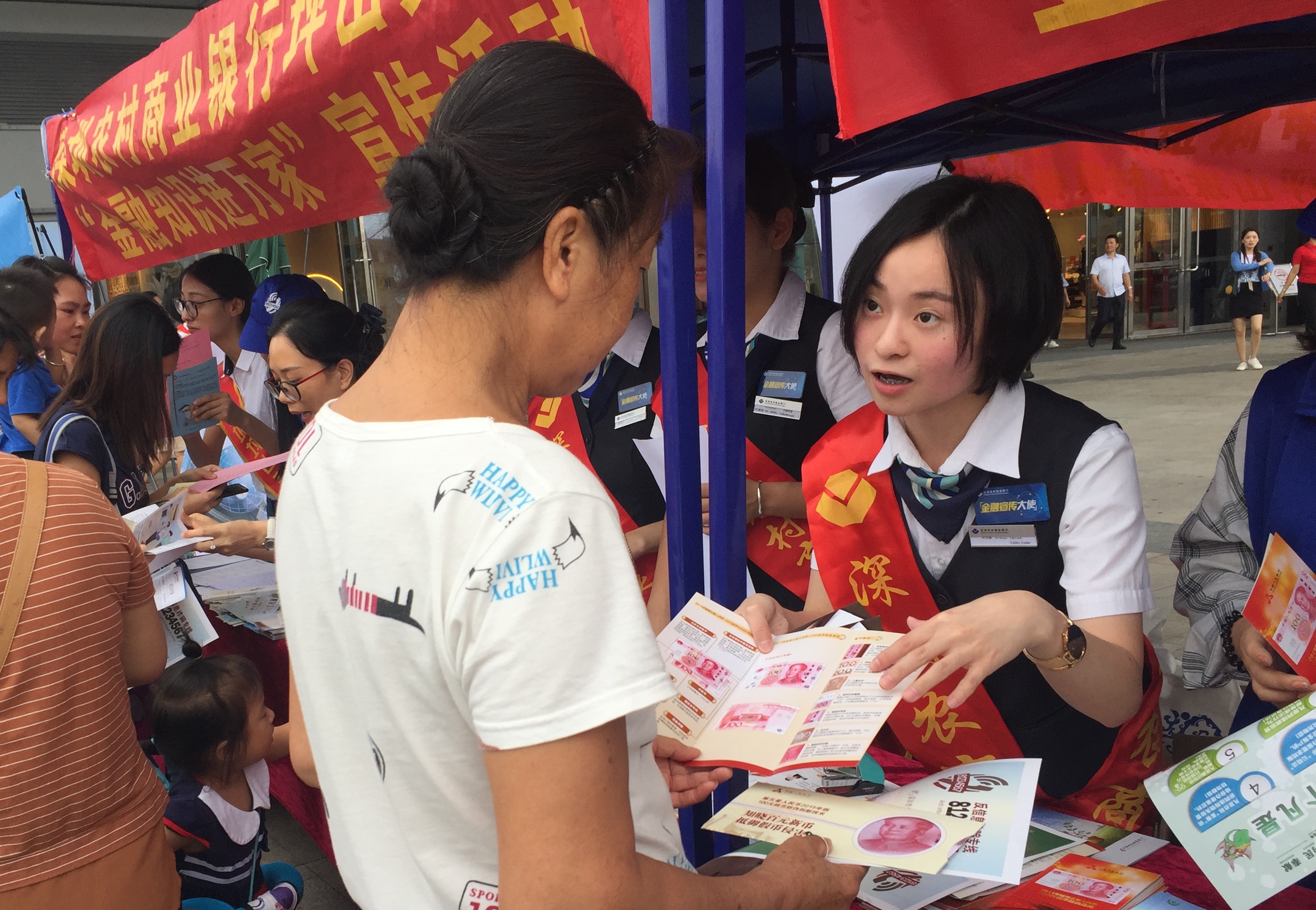 為進一步推動金融知識的廣泛傳播,9月28日,深圳農(nóng)村商業(yè)銀行攜同光大銀行、郵政儲蓄銀行、坪山珠江村鎮(zhèn)銀行在坪山區(qū)大型商場“益田假日世界廣場”舉行“金融知識宣傳活動”?;顒蝇F(xiàn)場來咨詢的市民絡繹不絕,很多聽完講解的市民都對這種貼心的宣傳服務譽不絕口。