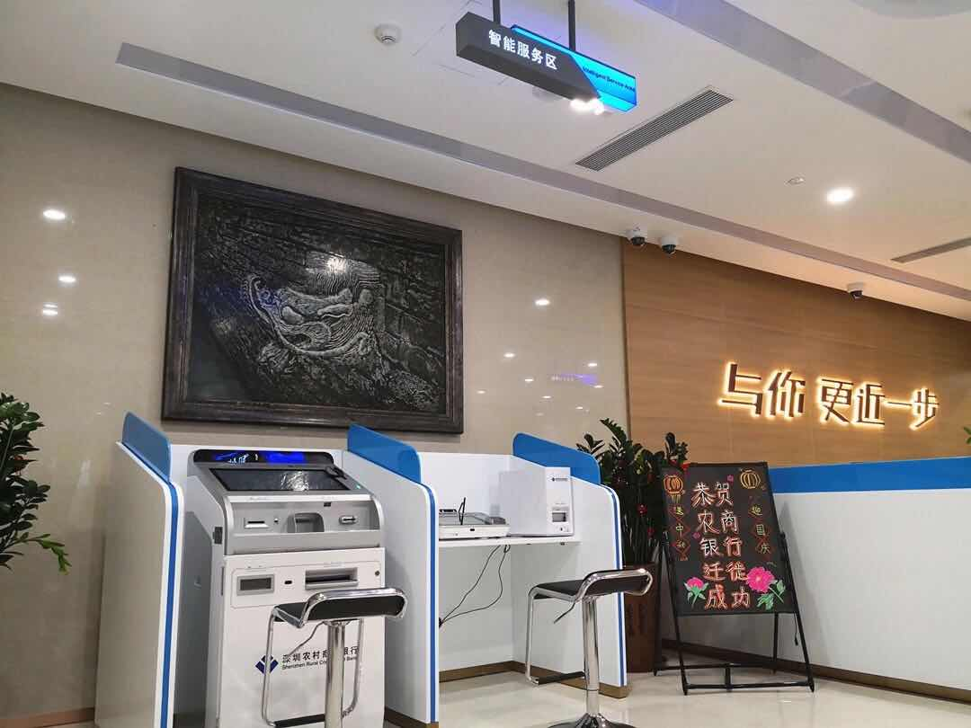 現金區(qū)域設置了磨砂自動感應玻璃門,滿足了客戶私密性的要求,讓客戶在辦理業(yè)務時更加放心、更加舒心。非現金區(qū)域的低柜和智能服務區(qū),為客戶自助辦理業(yè)務提供了便利。不同業(yè)務需求的客戶可到相應的智能設備上辦理業(yè)務,四臺多功能智能柜臺更讓客戶體驗無需排隊,無需填單,快速自主的辦理開戶、轉賬、定期理財、個人信息修改等業(yè)務。