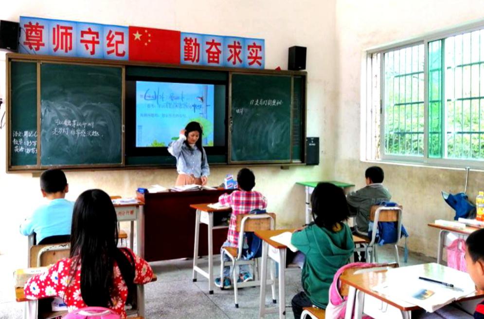 陂湖小學(xué)老師使用多媒體設(shè)備為孩子們授課