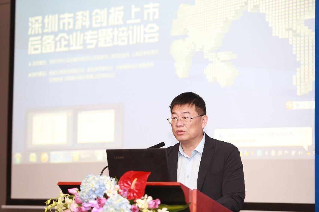 本次培訓(xùn)會由賈長勝局長致開幕詞,賈局長提到, 深圳市中小企業(yè)局一直致力于扶持本地 中小 企業(yè)做大做強, 本次培訓(xùn)會旨在幫助 后備 企業(yè)深入了解科創(chuàng) 板制度安排和 政策導(dǎo)向、企業(yè)上市策略及上市流程等方面的內(nèi)容, 助力深圳本地企業(yè)把握歷史機(jī)遇 登陸科創(chuàng)板 ,借力資本市場開創(chuàng)新里程續(xù)寫新篇章 。