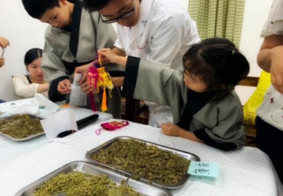 醫(yī)生帶領(lǐng)“小中醫(yī)們”制作驅(qū)蚊香囊