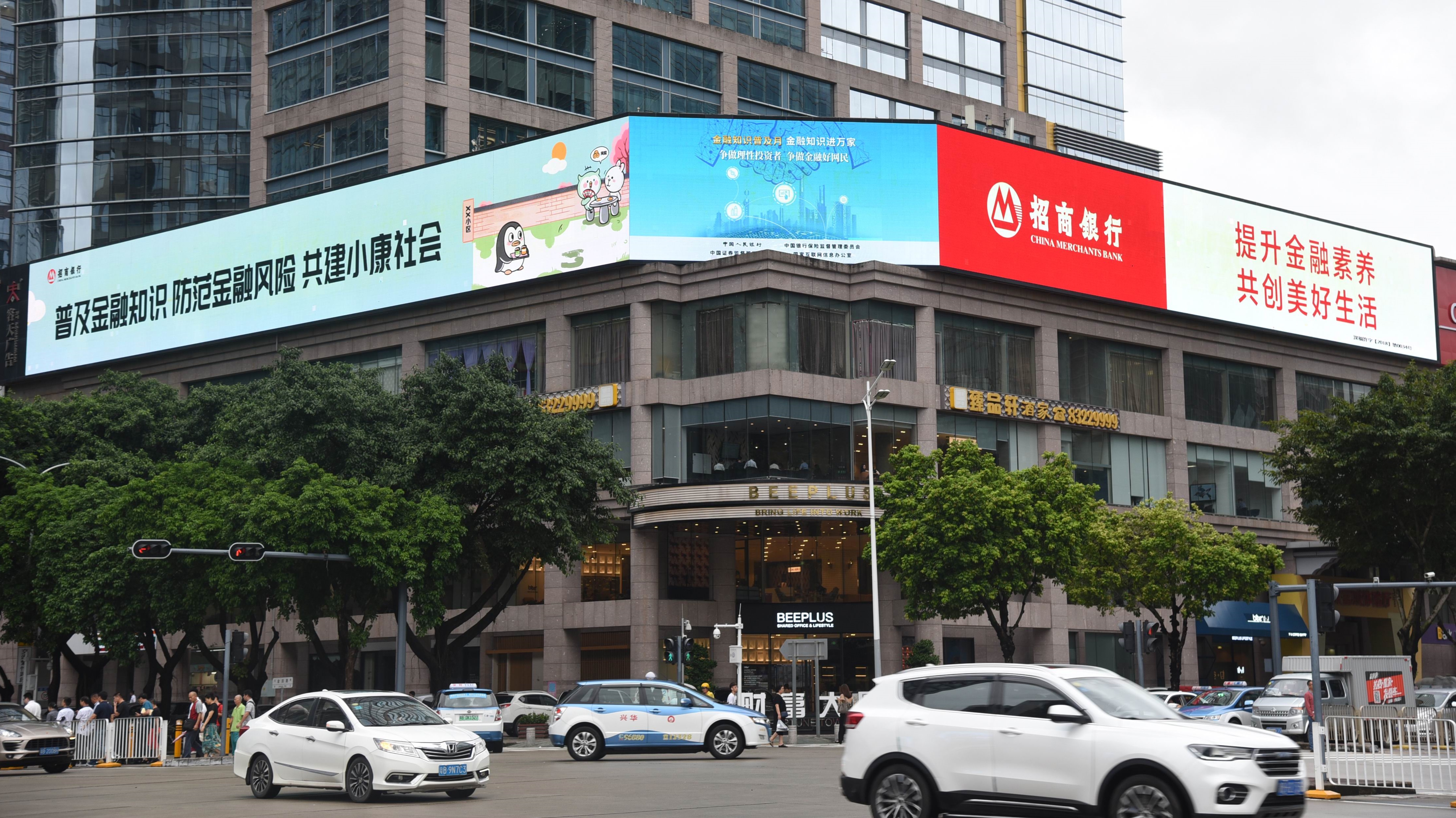 招商銀行除布局全轄網(wǎng)點(diǎn)營(yíng)業(yè)廳滾動(dòng)播放活動(dòng)口號(hào)、總分行特色金融宣教片外,同時(shí)在財(cái)富大廈三面LED電子屏投放大型戶外廣告,進(jìn)一步擴(kuò)大宣教受眾面,消保品牌宣傳效果顯著。