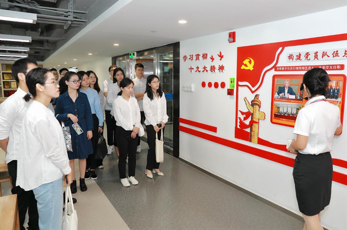開放日活動的第一站總行大樓,同學們在深圳農(nóng)商行工作人員的帶領下參觀了黨群活動中心,了解了黨組織架構、黨建特色活動、黨群風采展示與員工日常休閑娛樂活動。