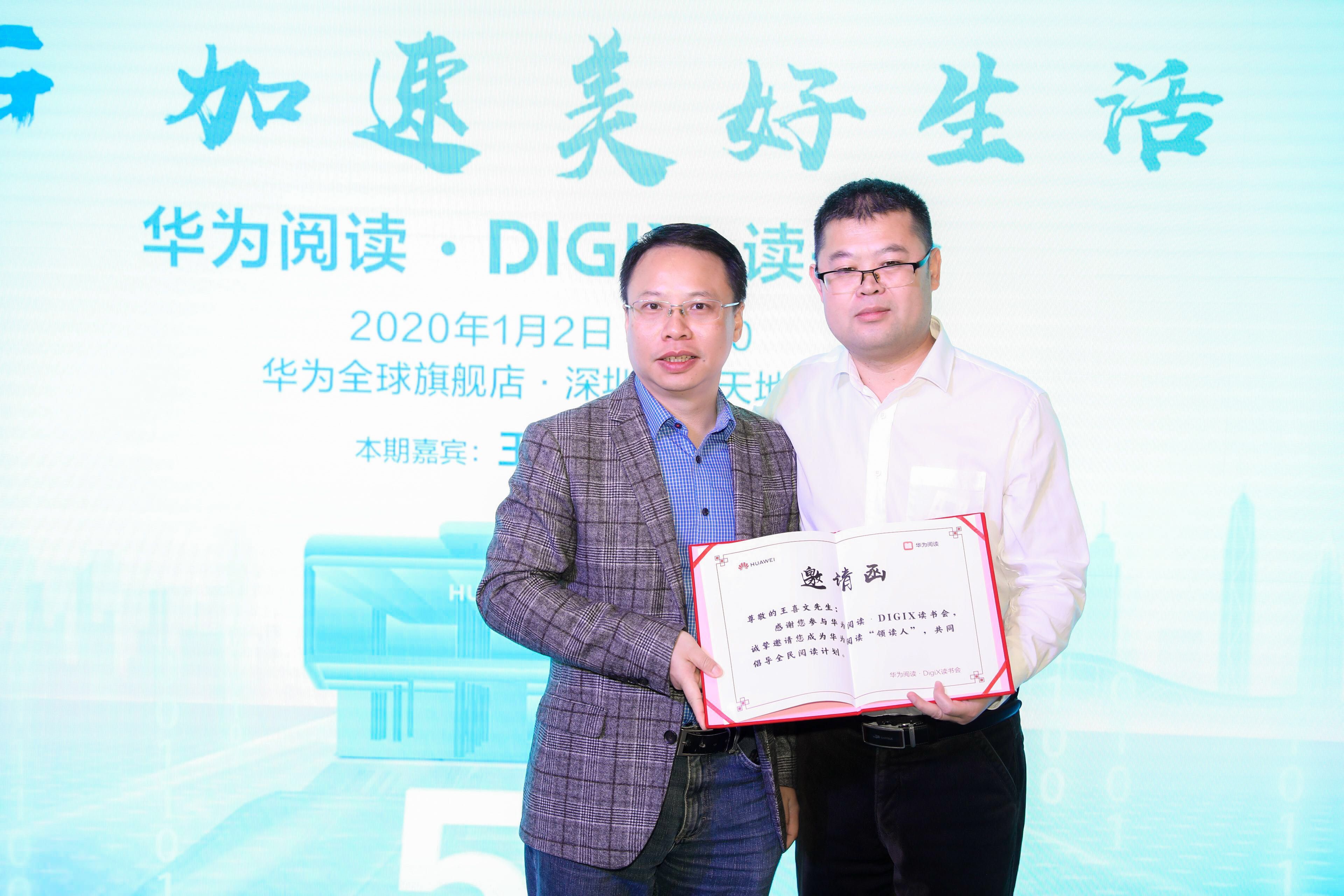 2020年1月2日,以“5G,加速美好生活”為主題的華為閱讀?DIGIX讀書會新年首場攜手智能制造及工業(yè)4.0專家王喜文來到位于深圳萬象天地的華為全球旗艦店,與華為閱讀的讀者朋友們分享5G與閱讀的數(shù)字變革、未來科技發(fā)展趨勢等精彩內(nèi)容。
