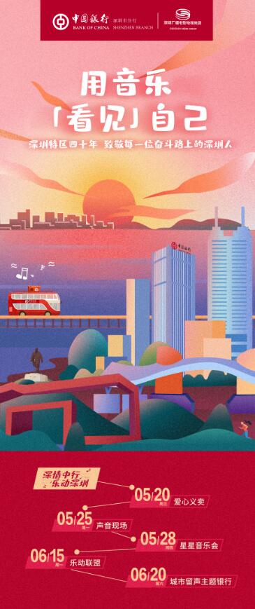 據(jù)了解,“深情中行樂動深圳”主題活動將持續(xù)至7月,深圳中行將與深圳廣電集團將陸續(xù)推出“解鎖深圳成就”H5互動、“星星音樂會”、“聲音現(xiàn)場”、主題TVC、樂動聯(lián)盟京東包裹、城市留聲主題銀行等子活動,與深圳市民共同發(fā)現(xiàn)城市中的溫暖、奮斗中的故事,為深圳特區(qū)四十年唱出贊美的心聲。