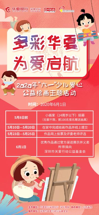 據(jù)了解,該活動(dòng)是由華夏銀行深圳分行攜手深圳晚報(bào)、小燕畫院開展的“多彩華夏為愛啟航”少兒愛心公益繪畫?;顒?dòng)向深圳市民招募小畫家,邀請(qǐng)他們用手中畫筆描繪精彩世界。同時(shí),將繪畫賦予公益與愛心,評(píng)選出部分優(yōu)秀作品進(jìn)行線上義賣,以點(diǎn)亮地貧兒童的生命之光。