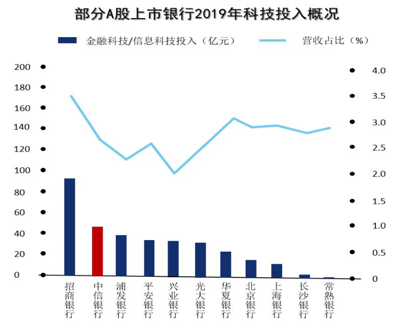 出國金融、青少年、女性、老年不同的細分客群,會有不同的“金融+非金融”服務方式……中信銀行一直有感知不同人群溫度的傳統(tǒng),但是要上規(guī)模積累出核心優(yōu)勢,離不開科技。今年,中信銀行確定了“以數(shù)字化轉(zhuǎn)型為主線,推動零售經(jīng)營管理體系迭代升級”的發(fā)展策略。2020年中信銀行科技投入69.26億元,位居股份制銀行第二,依舊在排名上咬著招商。