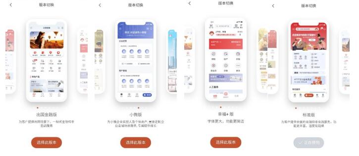 中信銀行app可以自行選擇最適合自己的版本,除了標準版之外,還有針對出國金融、小微,以及適合老人、軍人、海外、私人銀行等版本。