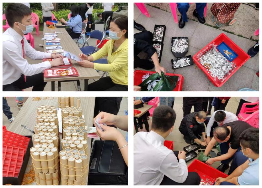 3至4月期間,深圳分行走進(jìn)水榭花都和華海瀾灣小區(qū),開展“硬幣兌換進(jìn)社區(qū)”公益活動(dòng),并向社區(qū)居民宣傳“3.15金融消費(fèi)者權(quán)益”、人民幣圖樣使用等金融知識(shí)。從2017年開始,深圳分行累計(jì)開展“硬幣兌換進(jìn)社區(qū)”活動(dòng)近50次,回收硬幣超過100萬枚,徹底解決居民硬幣積壓的老大難問題,是“一切人民為中心”、“急人民之所急,想人民之所想”的集中體現(xiàn)。