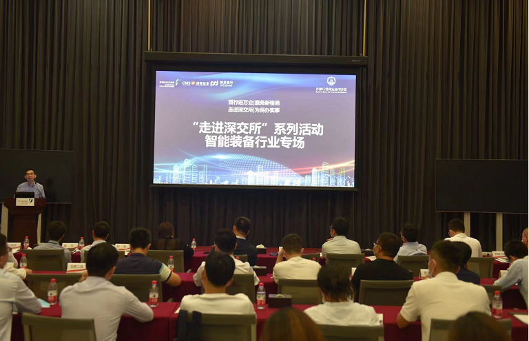 本次活動以智能裝備行業(yè)專場宣講與圓桌論壇為主,多家優(yōu)質(zhì)智能裝備企業(yè)參加?;顒娱_始,深圳證券交易所市場發(fā)展部與浦發(fā)銀行交易銀行部相關(guān)領(lǐng)導從國家政策面、經(jīng)濟面分析了中小企業(yè)、科創(chuàng)企業(yè)所處的歷史發(fā)展機遇,并介紹了“走進深交所”系列活動的初衷與意義——“信息共享、流程互通、功能互補,打造從0到1、從IP到IPO,共建為中小企業(yè)服務(wù)的金融生態(tài),攜手為國家經(jīng)濟發(fā)展貢獻力量”。隨后,深圳證券交易所、浦發(fā)銀行與招商證券介紹了智能裝備行業(yè)發(fā)展趨勢下的投融資規(guī)劃、上市路徑、支持政策以及相關(guān)金融服務(wù),并針對經(jīng)營發(fā)展困惑同與會企業(yè)進行一對一、面對面的交流。