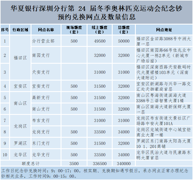 華夏銀行深圳分行共10家網(wǎng)點(diǎn)承辦冬奧紀(jì)念鈔發(fā)行工作。為方便老年客戶預(yù)約紀(jì)念鈔,該行7家網(wǎng)點(diǎn)開(kāi)放線下預(yù)約,市民可持有效的第二代居民身份證原件至公告的現(xiàn)場(chǎng)預(yù)約網(wǎng)點(diǎn)辦理預(yù)約。紀(jì)念鈔先到先得,額滿為止。
