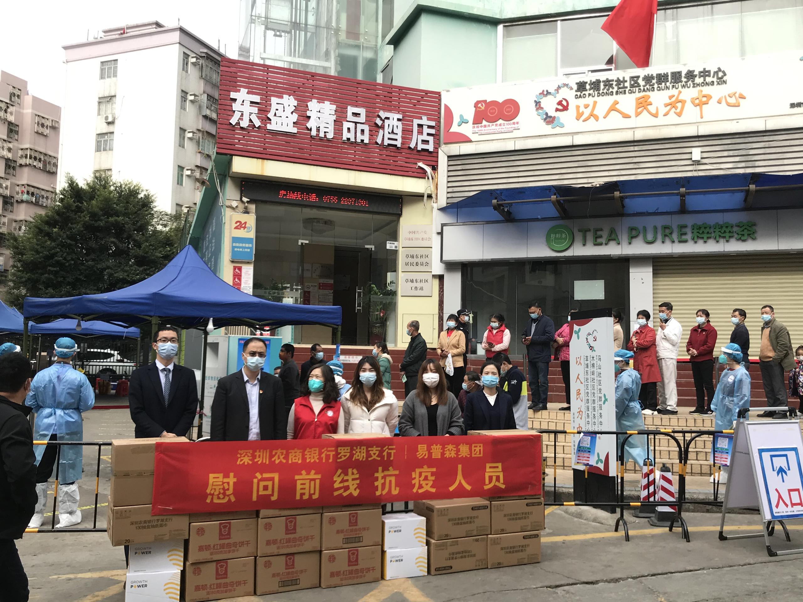 此次慰問(wèn)活動(dòng)的開(kāi)展也得到了深圳農(nóng)商銀行羅湖支行企業(yè)客戶的積極響應(yīng)。易普森集團(tuán)、深圳市富寶東門(mén)市場(chǎng)管理有限公司在獲悉深圳農(nóng)商銀行此次活動(dòng)后,積極響應(yīng),表示要為羅湖區(qū)做一份貢獻(xiàn),于是與該行攜手為羅湖區(qū)前線抗疫人員送去物資和問(wèn)候。