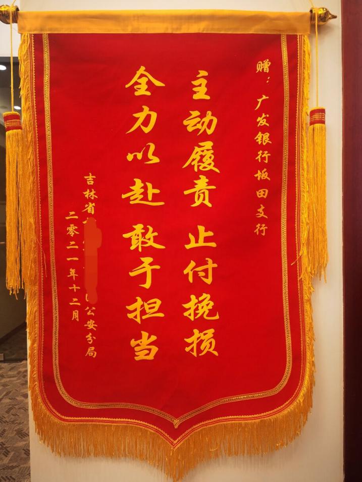 深圳新聞網(wǎng)2022年1月18日訊(記者 朱琳 通訊員 金橋)近日,廣發(fā)銀行深圳分行機(jī)智識(shí)別某公司賬戶涉嫌電信詐騙,成功堵截高達(dá)412萬元的涉案資金轉(zhuǎn)移。吉林省某市公安分局向該行授予錦旗,對(duì)該行有效保障人民群眾財(cái)產(chǎn)安全的行為給予了高度肯定。