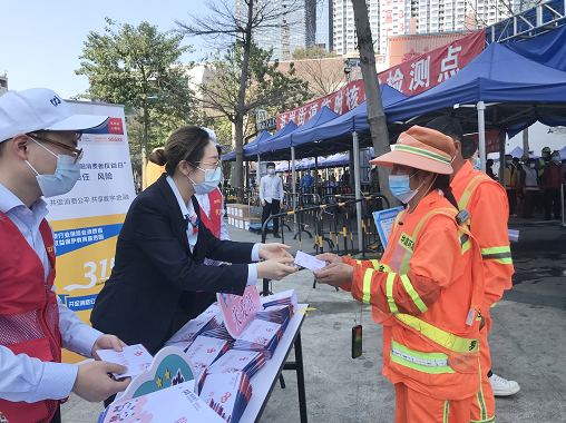 在筍崗街道,社區(qū)工作人員特地在核酸檢測點(diǎn)為環(huán)衛(wèi)工人們設(shè)置“綠色通道”,幫助他們快速完成核酸檢測??紤]到環(huán)衛(wèi)工人們普遍辨別能力較為薄弱,缺乏網(wǎng)絡(luò)與金融相關(guān)知識,容易成為被騙對象,志愿者們一一上前,深入淺出地為他們普及了防范電信網(wǎng)絡(luò)詐騙和非法集資等金融基礎(chǔ)知識,提醒不要輕易將個人信息泄露,讓環(huán)衛(wèi)工人掌握識破騙局的方法。