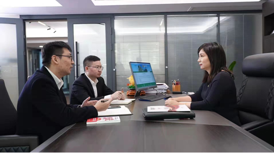 李江紅與團(tuán)隊(duì)伙伴溝通工作(中國(guó)人壽壽險(xiǎn)公司供圖)