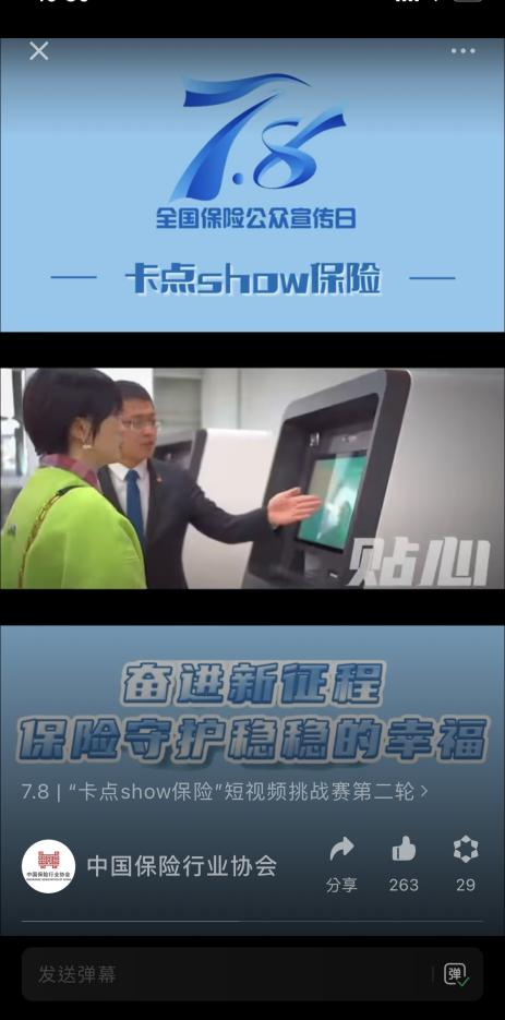 豐富多樣的線下活動,僅是太平人壽開展“7·8保險宣傳日”系列活動的一個側面。而另一個側面,太平人壽充分利用微博、抖音、視頻號等互聯(lián)網(wǎng)平臺,積極貫徹落實中國保險業(yè)協(xié)會組織開展的“卡點show保險”短視頻話題挑戰(zhàn)活動及“cue到我的幸福感@第10個7.8全國保險公眾宣傳日”網(wǎng)絡話題活動。