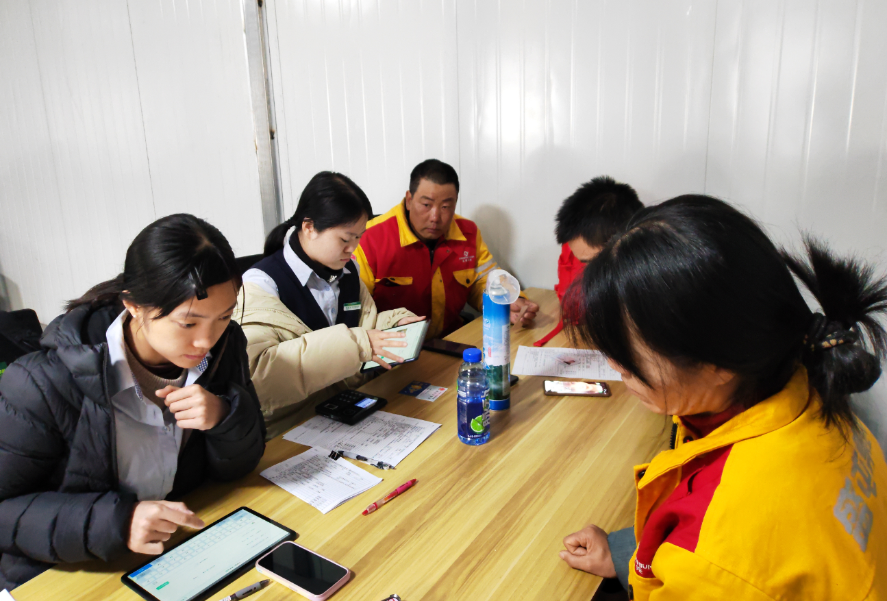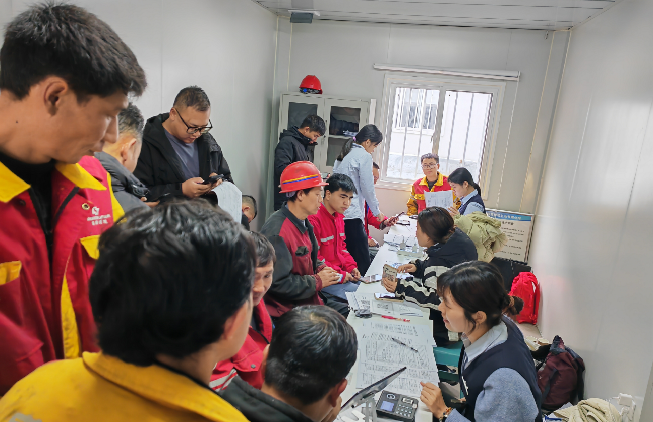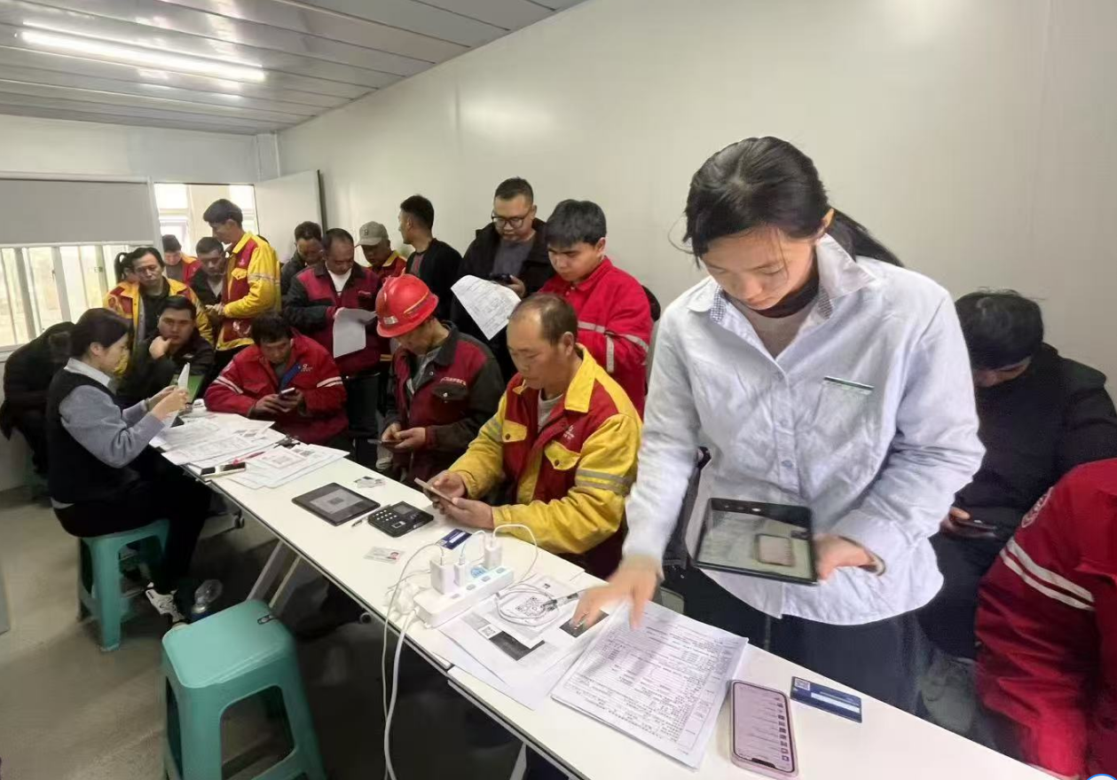 面對困難,陳嘉濤深知客戶需求無小事。他果斷決定帶隊前往現(xiàn)場,為當(dāng)?shù)貑T工集中辦理銀行卡開卡及工資代發(fā)相關(guān)手續(xù)。從繁華的深圳到偏遠(yuǎn)的高原,路途遙遠(yuǎn)、舟車勞頓,加上高原反應(yīng)帶來的身體不適,讓整個團隊面臨嚴(yán)峻考驗。但他們沒有絲毫退縮,抵達后便迅速搭建臨時服務(wù)點,投入到緊張的工作中。