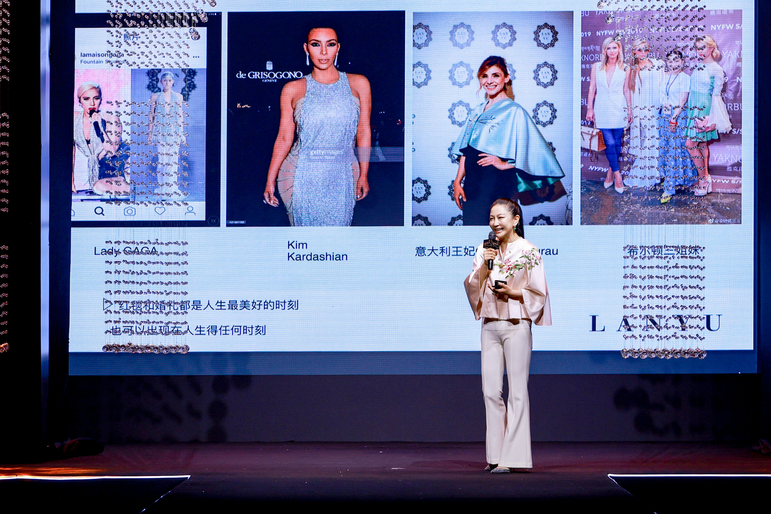 現(xiàn)場更有LANYU高定禮服展示,將中式美學意境與西式時尚剪裁完美融合,同時加重了蘇繡非遺元素的應用比例,將更多的非遺技藝融入服飾創(chuàng)作中,呈現(xiàn)出超高藝術水準。