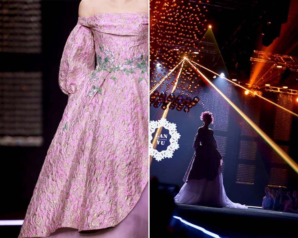 盛典秀場真實還原了巴黎時裝周舞臺,讓觀眾擁有了極致的感官體驗。40余套不同風格的禮服傾情展出設計中如同水墨畫恣意揮灑的筆墨,將山河間幽深、清遠、縹緲的東方韻味表現(xiàn)得淋漓盡致。