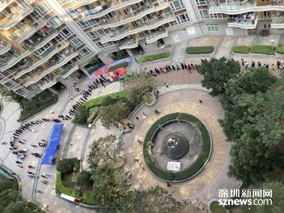 布吉理想家園小區(qū),市民有序排隊(duì)做核酸檢測(cè)