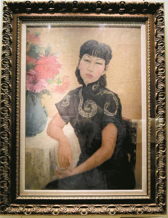 記者在現(xiàn)場看到,這幅最有名的自畫像作于1940年,畫中人身著黑色素花旗袍,斜著頭優(yōu)雅地坐在圓桌邊,桌上置一瓶紅花。古典高雅的著裝,端莊大氣的姿態(tài),眉宇間一縷淡淡的憂愁,增添了的神秘美感。整幅作品用色豐富,筆觸明快。據(jù)悉,這幅作品創(chuàng)作時正值二次世界大戰(zhàn)爆發(fā),巴黎淪陷,潘玉良棲居郊外,在這一時期,還有很多佳作問世。