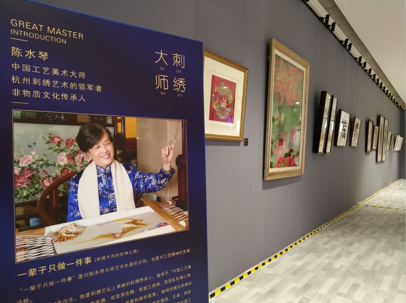 中國工藝美術(shù)大師陳水琴親臨現(xiàn)場,為九方藝術(shù)空間揭牌,現(xiàn)場指導(dǎo)此項技藝的傳承人為現(xiàn)場觀眾進行技藝演示,同時為參加活動的嘉賓和藝術(shù)愛好者們開展簽名送書活動。讓更多的人了解中華民族的優(yōu)秀文化遺產(chǎn),向大眾更好地宣傳、展示杭繡這項非物質(zhì)文化遺產(chǎn)的魅力,弘揚和傳播我國的優(yōu)秀傳統(tǒng)文化。展覽至19日,廣大市民可前往參觀,體驗杭繡之美。