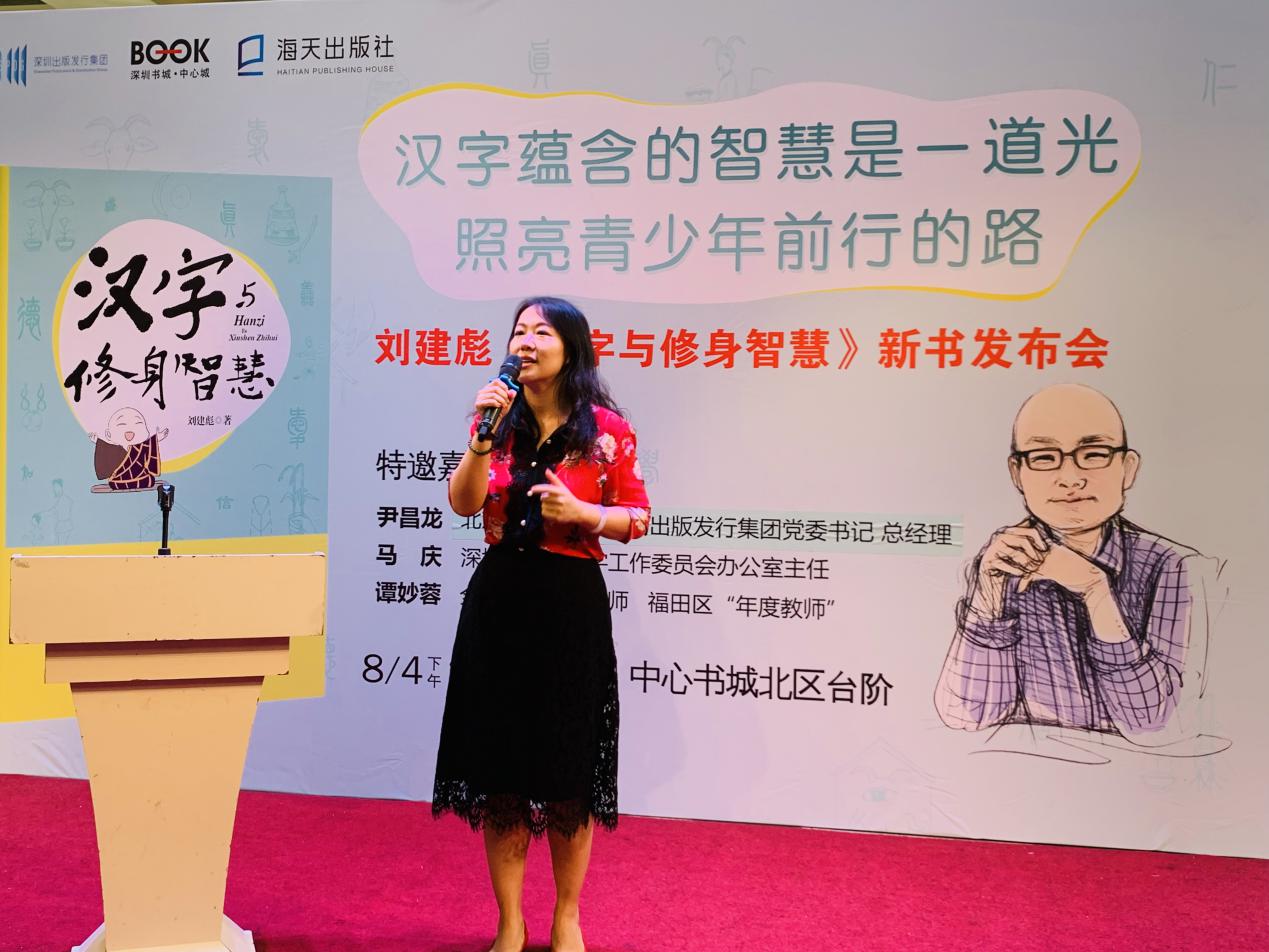 深圳出版發(fā)行集團(tuán)黨委書記、總經(jīng)理尹昌龍?jiān)诎l(fā)言中指出,漢字里蘊(yùn)藏著中華文明的密碼,而《漢字與修身智慧》這本書恰是從漢字出發(fā),解讀中華文化的基因,以美德教育為旨?xì)w,有助于喚起我們對(duì)漢字的熱愛,對(duì)民族文化的自信。他向在場(chǎng)觀眾推薦這本書,并指其信息量大,兼具趣味性、可讀性與啟發(fā)性,值得細(xì)細(xì)品味。另外,馬慶主任表示,漢字投射的是古人的心靈,古人的智慧,古人的修養(yǎng),他贊嘆《漢字與修身智慧》一書為深圳的文化積累做出了貢獻(xiàn),并鼓勵(lì)親子共讀,共同成長(zhǎng)。譚妙蓉老師也力薦此書,認(rèn)為書中漢字心能量中的小故事深入淺出,富含哲理,對(duì)青少年乃至成年人美德教育均有借鑒作用,并聲情并茂地朗誦了書中的《陋室銘》一文,她希望作者將來能創(chuàng)作出更多關(guān)于漢字的書,讓更多讀者感受到傳統(tǒng)文化的熏陶與滋養(yǎng)。