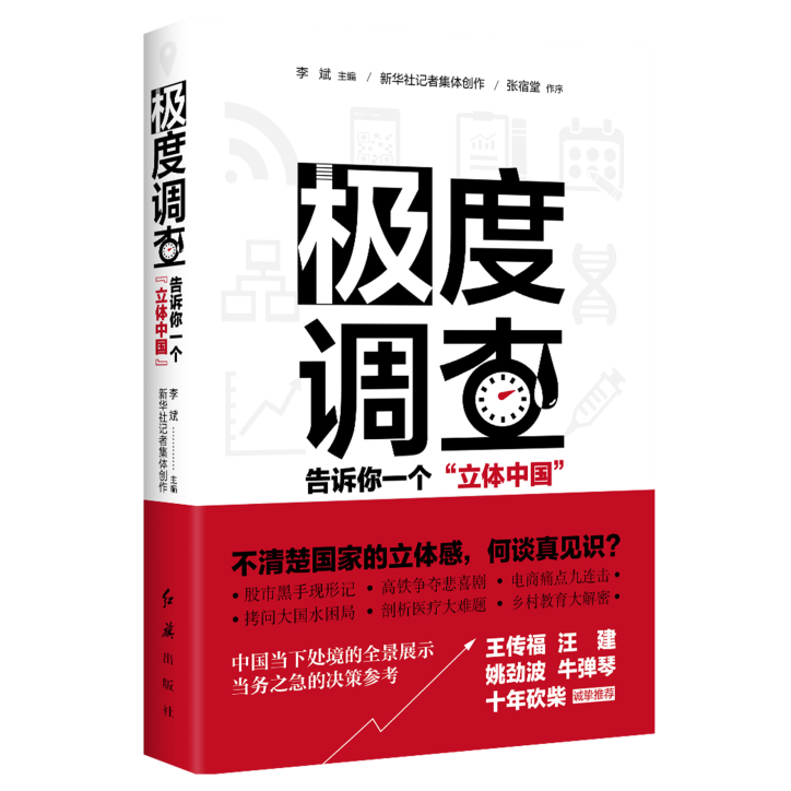 “他山之石,可以攻玉?!秉h員干部除了直接調(diào)研,還要善于間接調(diào)查,研讀科研機(jī)構(gòu)和媒體的調(diào)研報(bào)告,通過(guò)專業(yè)人士的視角,了解國(guó)情。 《極度調(diào)查:告訴你一個(gè)“立體中國(guó)”》,就是一本記錄時(shí)代變遷的調(diào)研力作。新華社北京分社副社長(zhǎng)、總編輯李斌者歷時(shí)三年,深入中國(guó)各地實(shí)施一系列重大調(diào)研,直擊民生痛點(diǎn)與焦點(diǎn),全方位呈現(xiàn)了復(fù)雜多樣的中國(guó)社會(huì)現(xiàn)實(shí)。20余萬(wàn)字的《極度調(diào)查》,來(lái)自繁華都市,來(lái)自風(fēng)云行業(yè),更來(lái)自深山峽谷、偏遠(yuǎn)山村,股市、高鐵、電商、生態(tài)、教育、貧困、健康等諸多方面均有涉及,傳達(dá)出了最一線、富有思想沖擊力的聲音。讀此書(shū),全方位、多維度了解中國(guó)國(guó)情。
