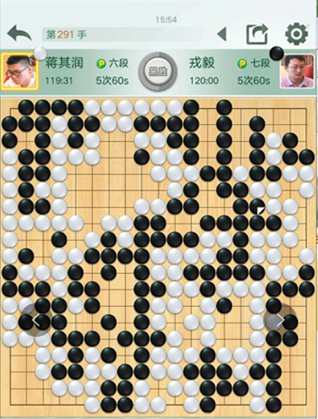 【賽場花絮】本輪比賽中,下出了“四劫循環(huán)”無勝負的棋局。此局出現(xiàn)在上海建橋?qū)W院隊對陣日照山海大象隊的主將之戰(zhàn)中,上海主將李維清與日照主將江維杰下出“四劫循環(huán)”,按規(guī)定,本局判為無勝負。對局停止時,雙方都各剩最后一次讀秒。兩人立即進行加賽。中國圍棋隊領(lǐng)隊華學(xué)明發(fā)朋友圈稱贊棋手具有職業(yè)風范。